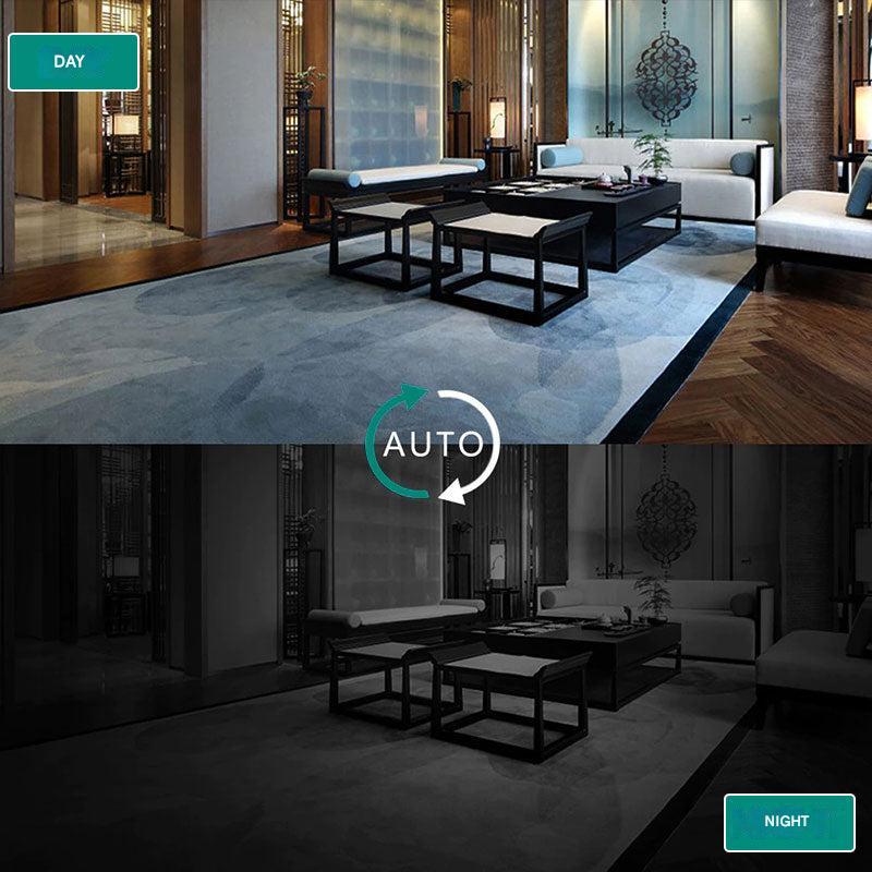 Smart night vision: IR-CUT automatically switches between day and night mode up to 5 meters.